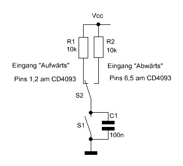 Bausteins CD4093 wie im Schaltplan mit dem Wechselschalter