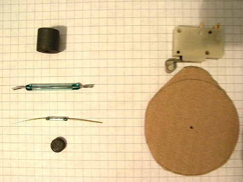 (in der Skizze rot dargestellt) einen Reed-Kontakt (Schließer)