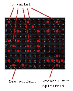 mit allen 5 Würfeln gestartet, was auch im Display angezeigt wird.
