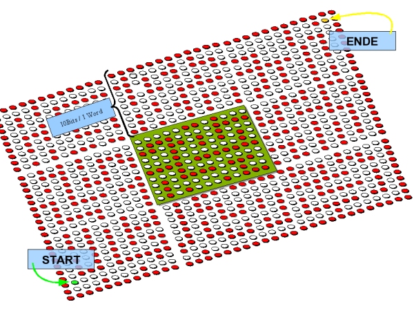 dem Bitwert „1“ (LED=ein) kodiert, die „Wege“ (Durchgang) mit dem