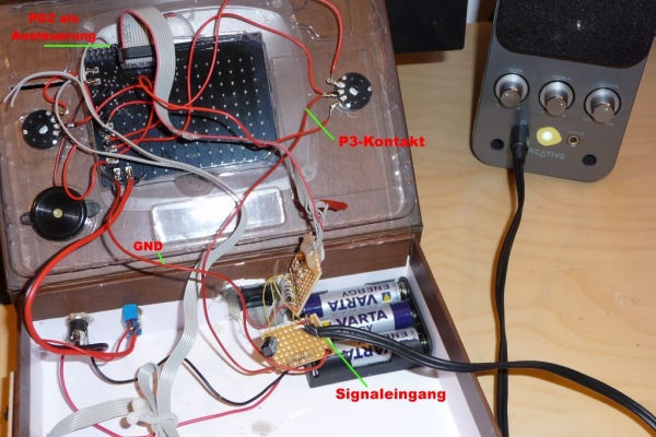 einem Kondensator (100 µF) mit dem P3-Kontakt verbunden.
