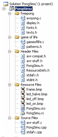 Source Files – C++ Dateien der Anwendung, avr-stuff.c Code für Simulator