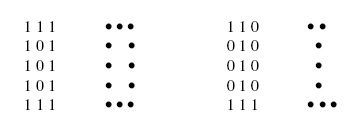 Obwohl der Sensor prinzipiell bis -40 °C messen könnte, ist der Anzeigebereich durch die vereinfachte Zahlenkonvertierung auf positive Werte beschränkt. Die Anzeigesteuerung erfolgt über die Include-Datei pong_number_display.h mit Ziffern im Format von 5 (Zeilen) x 3 (Spalten) = 15 Pixel. Hierzu nur eine kurze Erläuterung: die Ziffern sind als Binärdaten abgelegt, diese lauten z. B. für die „Null": 0b11111, 0b10001, 0b11111 und geben die Belegung der drei Spalten an. Trägt man die Spalten nacheinander auf, ergibt sich das nachfolgende Muster. Wenn man dann noch die (dunklen) Nullen weg lässt und die Einsen durch Punkte ersetzt, kann man schon die Null erkennen: