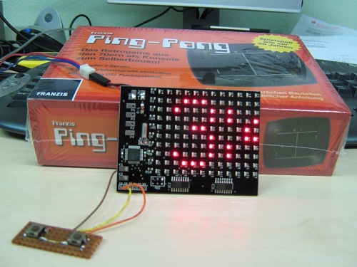 Die Platine aus dem Franzis PING-PONG hat ein überaus gut durchdachtes Design. Neben einer ISP Schnittstelle sind auch die unbenutzten I/O-Leitungen des MEGA8 und die Anschlüsse für den Anschluss eines Quarzes verfügbar. Dadurch ist diese Platine für eine Vielzahl anderer Projekte universell einzusetzen. Hier folgt die Beschreibung zum Bau einer Quarz-Uhr auf der Basis der Ping-Pong-Platine.