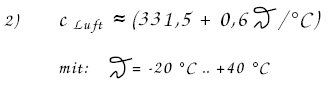 Für die temperaturabhängige Schallgeschwindigkeit in Luft gilt näherungsweise: