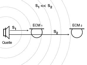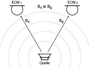 Die größte Differenz wird erreicht, wenn sich Schallquelle und beide Mikrofone auf einer gedachten Linie befinden.