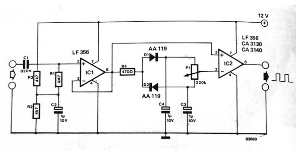 Schaltung. Sobald eine Schwellenspannung erreicht ist wird ein pos.