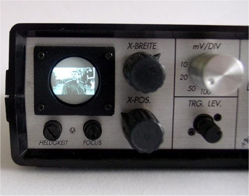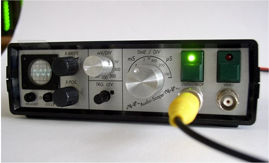 Die Idee ein sehr kleines Oszilloskop zu bauen hatte ich schon länger. Als Röhre dazu sollte ein Suchermonitor aus einer ausgedienten Videokamera dienen. So ein Oszilloskop kann aber nur für geringe Frequenzen eingesetzt werden. Audiosignale lassen sich prima darstellen. Mein Gerät steht auf einem KW-Receiver und ist praktisch immer an wenn ich auf Wellenjagt bin.