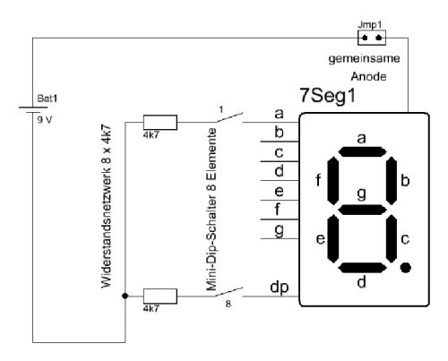 Schaltung konnte eine zu untersuchende Sieben-Segment-Anzeige wie im
