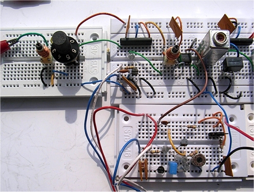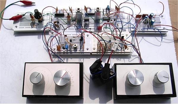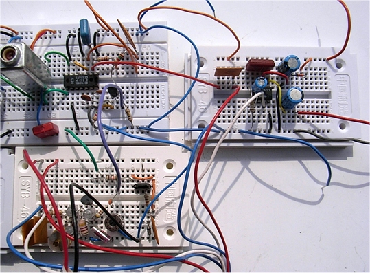 Im folgenden Bild ist ein Teil der Gesamtschaltung auf Steckboards zu