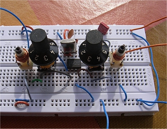 einem Steckboard aufgebaut und darüber einem Beitrag für das