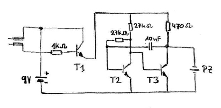 schaltet dann einen Piepser ein, sodass ein Ton entsteht.