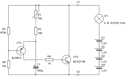 zu leiten. Der Kollektorstrom von VT1 fließt über R4 in die Basis von