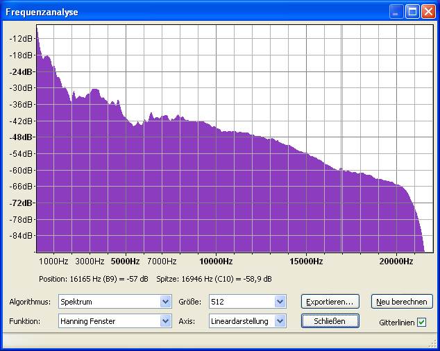 .mp3-Kompression. Mit Speclab wurden die Stücke ganz analysiert. Die