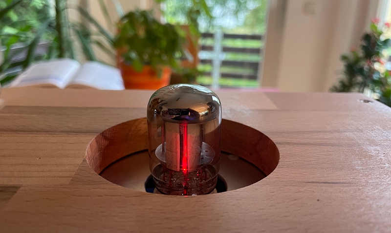 Da man das Glühen der Röhre leider nicht sieht, habe ich mit einer