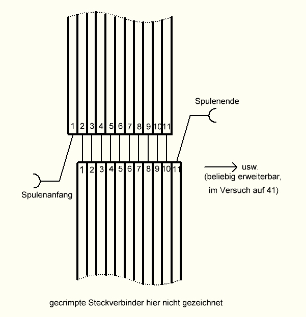 einfaches Zusammenstecken eine Spule herstellen, wobei dann Anfang und Ende