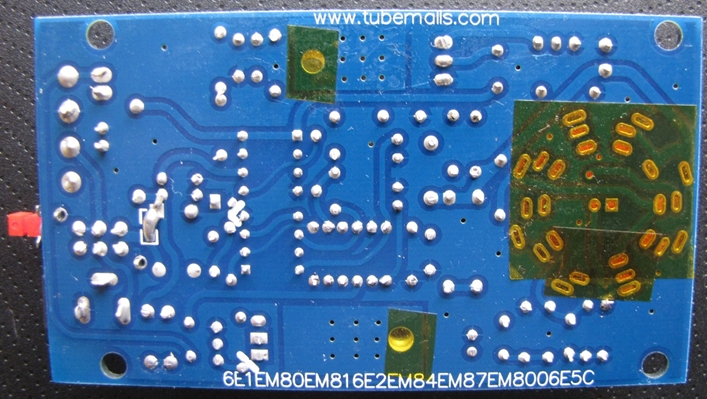 Abb. 5: Chinesische Platine mit der 6E2 und Anschlüssen für 250 VDC Betriebsspannung und 6,3 Volt Heizspannung