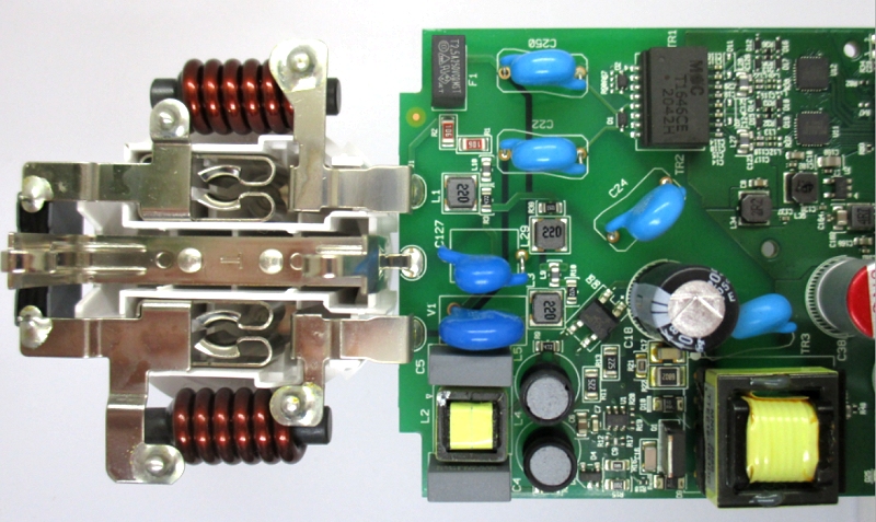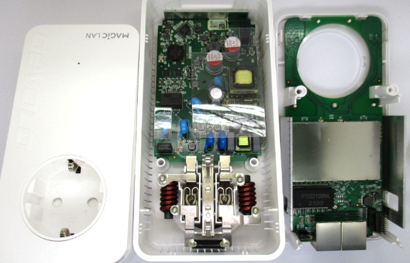 Leitung gekoppelt. Die beiden HF-Drosseln an der Steckdose bilden