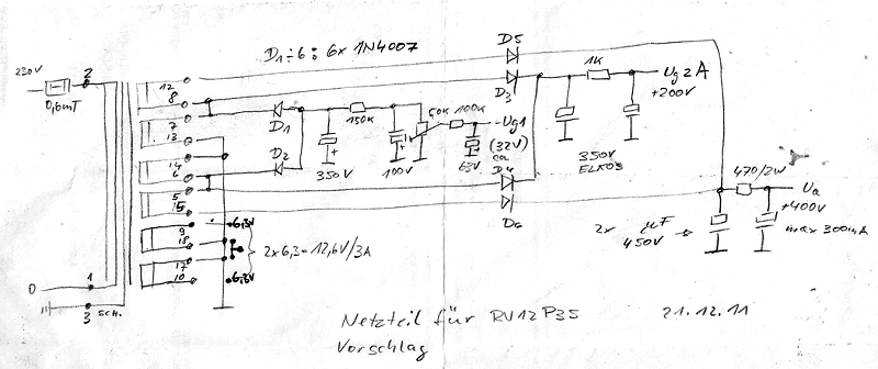 RL12P35 nimmt bei 400 Volt 48 mA. Der AÜ sollte nicht mehr als 4
