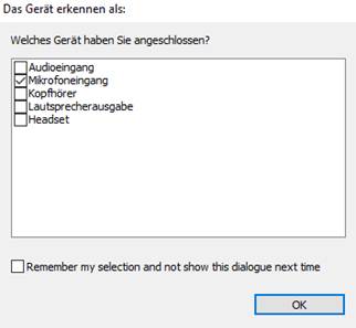kleinen Anfrage an den User, sobald ein Stecker eingesteckt wird. Es erscheint