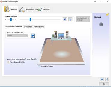 namens HD Audio Manager, die die Verstärkungen einstellen lassen. Wichtig ist