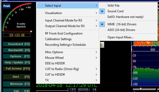 Der Software HDSDR (siehe http://www.hdsdr.de/ ). Das Programm ist