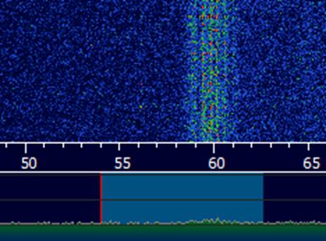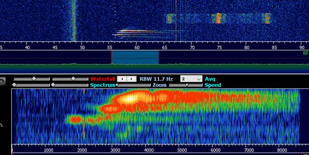 58 kHz in den hörbaren Bereich von 0 bis 8 kHz verschoben. Natürlich ist da nur