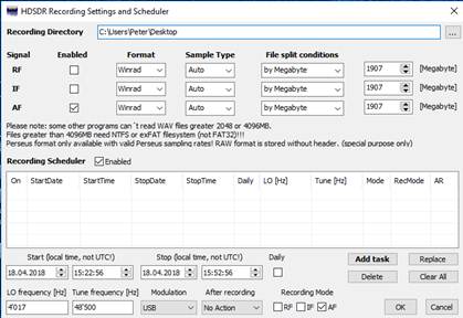 Aber: HDSDR kann auch aufnehmen. Und zwar