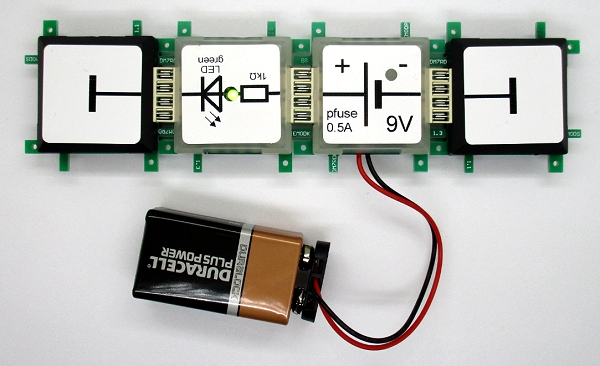 Stromkreis mit Batterie und LED reicht schon, um das System
