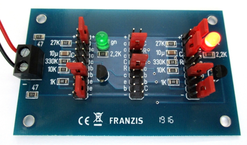- Sie können die Platine aus dem Lernpaket oder einen Eigenbau mit gleicher Bauteile-Anordnung verwenden.