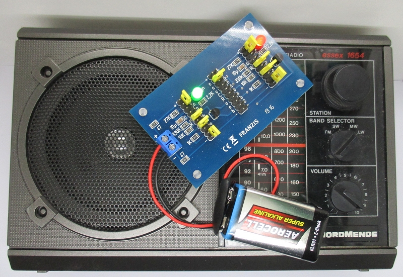 besten legt man die Platine direkt auf ein Radio, möglichst nahe bei