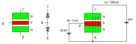 Elektronen zum Kollektor abfließen und nur ein kleiner Teil zur Basis.