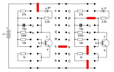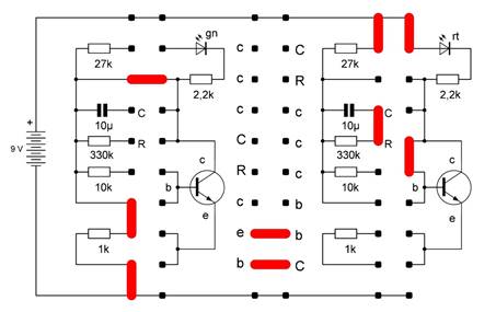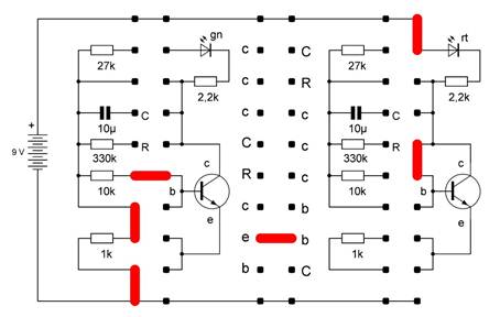 großen Unterschied. Bei dieser Schaltung ist das anders. Die rote LED ist bei