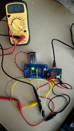 The micro:bit's ADC was calibrated using the stable voltage of a Li-cell and a zero voltage, the Li-cell supplying 2.93 V.