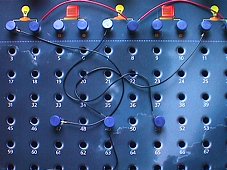 Mit Elektro Plus kannst du nicht nur die Grundlagen der Elektrizitätslehre erforschen, sondern du kannst mit dem Baukasten auch eigene Spiele aufbauen. Ein Beispiel ist das elektrische Labyrinth. Verwende viele Leitungen zu den einzelnen Lampen, die möglichst verwirrend verlegt werden sollen und an eigenen Kontaktfedern enden. Dein Spielpartner muss nun möglichst schnell herausfinden, welcher Draht zur grünen Lampe führt. Danach darf er den Aufbau verändern, und du bist an der Reihe, das Labyrinth zu durchschauen.