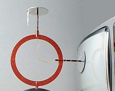 Mit einem einfachen Versuch kannst du diese Ladungen nachweisen. Stecke dazu eine Metallplatte mit Stiel in deinen Zauberring und stelle sie ganz nahe an den Bildschirm. Ein Draht soll zu einer zweiten Platte führen, an der ein doppelter Paperstreifen als Elektroskop befestigt ist.