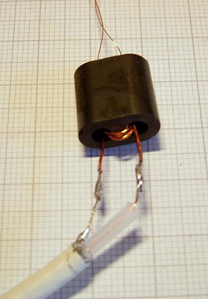 Windungen am niederohmigen Kabel und 8 Windungen am