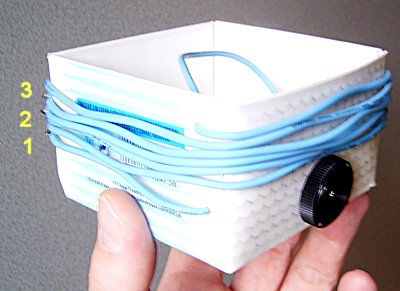 Windungen 9 cm * 9 cm mit Kupferlitze aus einem Netzkabel. Der