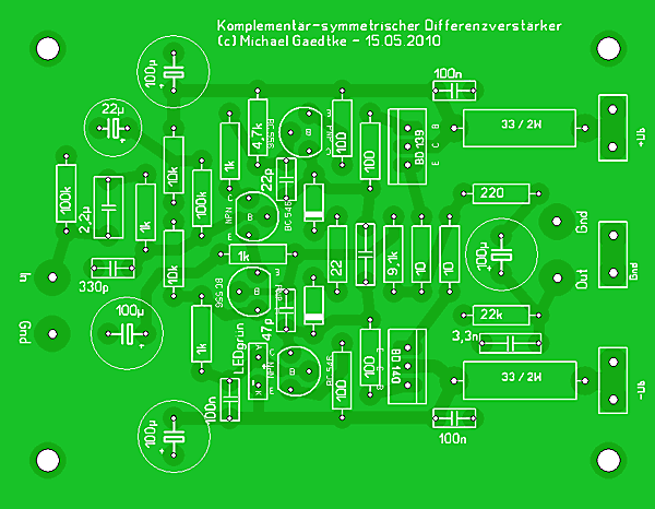 und damit für ein sehr stabiles DC-Verhalten. Bei den heute üblichen Signalquellen kommt man mit einem Verstärkungsfaktor von 10 oder +20dB in den meisten Fällen aus, um Endstufen voll aussteuern können. Wenn mehr – oder weniger – gebraucht wird, kann man das Gegenkopplungsnetzwerk einfach umdimensionieren: