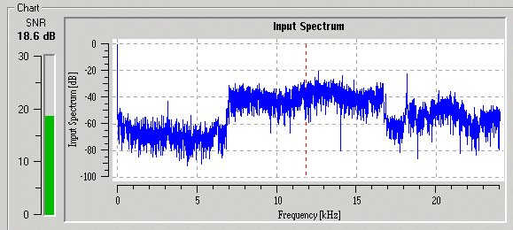 "Zu meiner großen Freude konnte ich das DRM-Audion mit EL95 aufbauen und erproben. Es konnten sämtliche DRM-Sender in den Bändern 60 / 49 / 41m von 5.810 - 7.465 KHz mit Logo aufgenommen werden, wobei etwa die Hälfte mit Audio stabil decodiert wurden. Es wurde die Software DREAM, Version 1.5.2 verwendet. Das Einstellen der Frequenz ist etwas diffizil, man bräuchte ein stärker untersetzendes Getriebe am Drehko, da nur ca. ein Drittel des Verstellbereichs nutzbar ist. Sehr nützlich für die Abstimmung ist der Wasserfall. Man dreht solange, bis der "grüne DRM-Teppich" in Fenstermitte ist. Die Rückkopplung wird ca. 2/3 aufgedreht und ist unkritisch einzustellen. Die Frequenz-Konstanz ist sehr gut, aber die "Handkapazität" beim Anfassen des Gehäuses macht sich etwas bemerkbar."