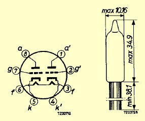Die Schaltung wurde komplett vom großen Radiomann übernommen. Allerdings läuft der kleine mit 6 V Anodenspannung. Nur in Bezug auf die Heizleistung ist die kleine Röhre genauso durstig wie die große: 0,3 A bei 6,3 V. Das kleine Radio läuft deshalb jetzt an einem 6-V-Akku.
