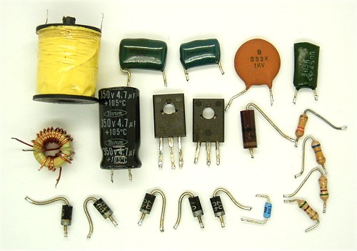 Außerdem werden alle Bauteile ausgelötet. Da liegt der ganze Bausatz: