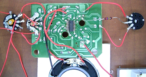 TDA7088T. Man stimmt die Frequenz mit zwei Tasten ab. Reset setzt den