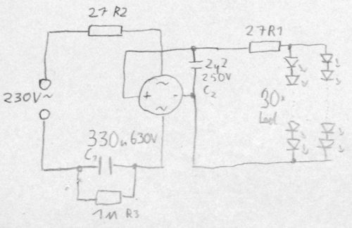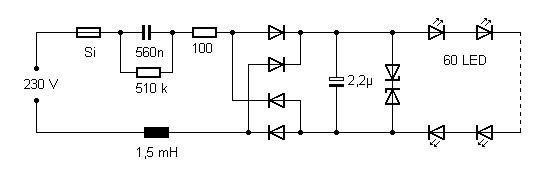 einfache Schaltung wie in Deiner defekten LED-Lampe. Die Schaltung hat