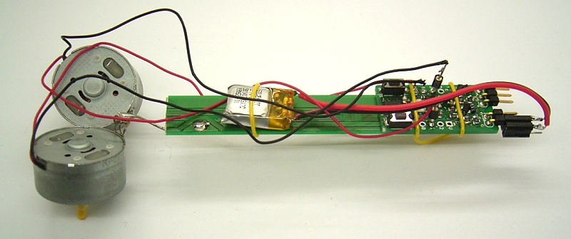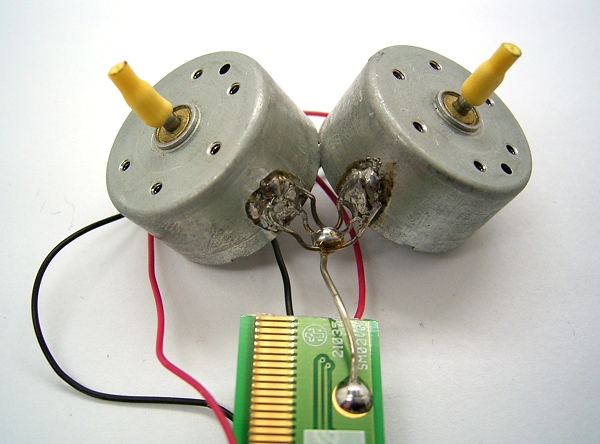 Draht an die Trägerplatine als Fahrzeug-Chassis gelötet. So kann man