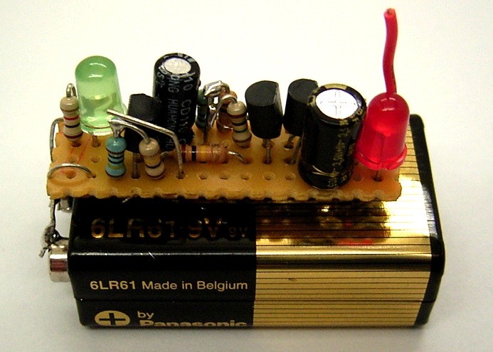 Zeitkonstante von zehn Sekunden, praktisch leuchtet die LED aber etwa