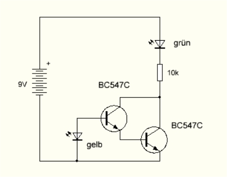 Darlington-Stufe und eine weitere LED. Der Versuch entspricht einer