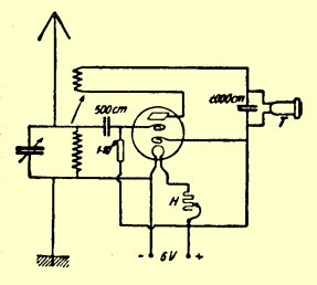 Mir ist unklar, wie der 500pF-Kondensator in dieser Audionschaltung eine Rückkopplung zur Entdämpfung des Schwingkreises bewirken soll, wo doch weder eine Rückkopplungswicklung, noch sonst eine weitere Ankopplung am Schwingkreis zu sehen ist.