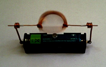 Es wurde ein kleiner, starker Magnet verwendet, der direkt auf der Batterie liegt. Die Achslager bestehen aus Kupferdraht.