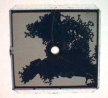 Wenn ein durchsichtiger Stoff die Polarisationsebene des Lichtes verdreht, kommt doch wieder Licht durch. Das passiert z.B. bei der optischen Doppelbrechung. Der Versuch ist ganz einfach. Man legt ein Geodreieck oder etwas anderes aus Plexiglas zwischen die beiden gekreuzten Polarisationsfolien. Dann sieht man schöne bunte Farben, die Auskunft über innere Spannungen des Materials geben, weil die Schwingungsebene des Lichts gedreht wird. Das selbe machen die Flüssigkristalle im LCD. Normalerweise wird das Licht gedreht, wenn man aber eine Wechselspannung anlegt, dann nicht mehr. So wird es hell oder dunkel, je nachdem wie die Filter angeordnet waren.